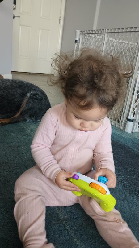 If your baby or toddler lives in a house with gamers, this toy is a must! The Laugh and Learn Game And Learn Controller is just like a real game controller but with learning functions for young minds. I like how there are two modes. First is the learning mode where they can learn ABC, shapes and colors! Second is the music mode. My little one loves pressing the buttons to hear the music and watch it light up. One of the best parts is that it's just not buttons. It has a joy stick, and 2 sensory clickers on the top. Love how I can easily wash and sanitize this toy after she take it on her toddler adventures. Most of all the little one thinks she is just like her siblings playing games on the big tv. It makes for a sweet moment between siblings.