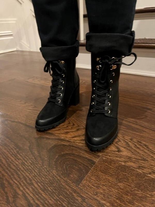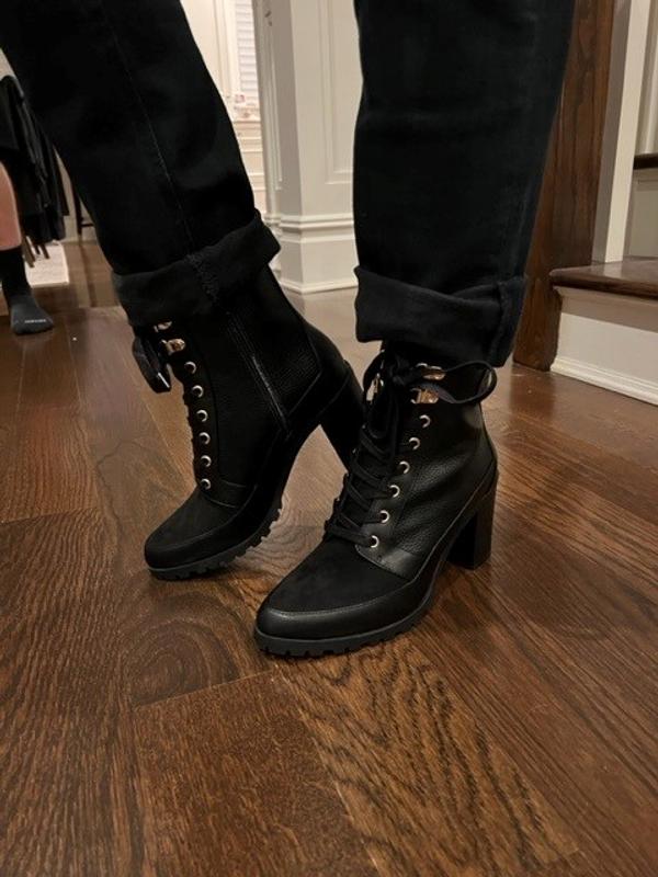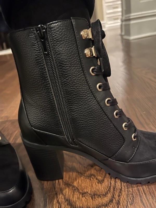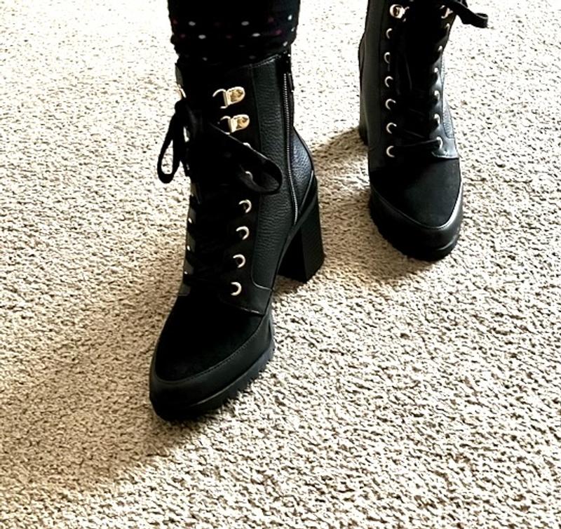 Great boots. Very comfortable. The height of the heel is just right. The thickness of the heel makes the boot feel very sturdy on the foot. The whole boot doesn’t look so wide on the foot like these kind of boots usually do. They are pretty perfect except my issue is that they’re not made out of a real leather. If they were made out of real leather, they would be perfect. So these are affordable and great.