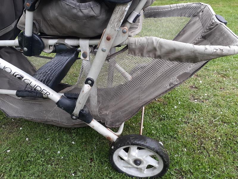 The DuoGlider stroller is great. It moves smoothly, even over bumps and cracks in the road or sidewalk. I love the big basket underneath to keep things in.