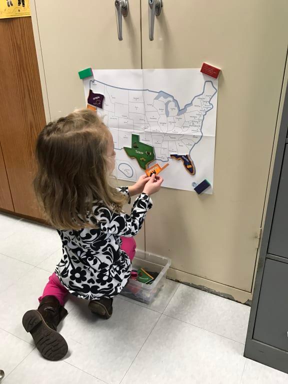 I purchased this for my 3 year old granddaughter and honestly wanted to put it together myself also! We love it as a family! It wouldn't fit in my refrigerator and it didn't work well wth the paper outline laying on table so I got creative!!! I purchased a magnetic dry erase board the same size and used modge podge (glue) and glued the outline to the board and smoothed out all the wrinkles and bubbles!! And let me tell ya we not only have a beautiful puzzle but with the bright colors looks like a work of art!! It hangs in my granddaughter's playroom and is easily removed to put together anytime!! Not stashed away in a box and forgotten about! I love that the outline is there and capitals of all the states readily to learn!! Everyone in our house loves this puzzle and great grandparents even liked it when they visited!! So great for ages 3-76!!! Learning Resources never ceases to amaze me with the great products!! I absolutely love shopping for things that help her learn all while she feels she is just playing!! Definitely worth the money and such sturdy quality!