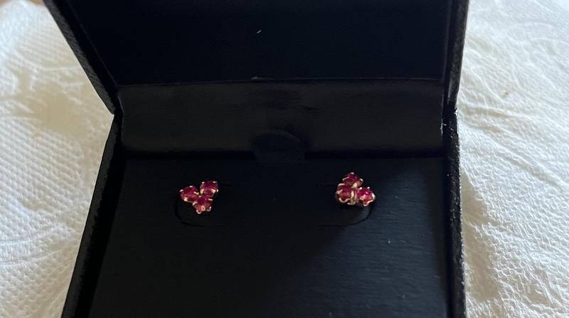 I love these little earrings. I put them in my second hole. What I love is the deep sparkly color of the ruby. I highly recommend them. they really show up on the ear. size just right:). sale price wonderful