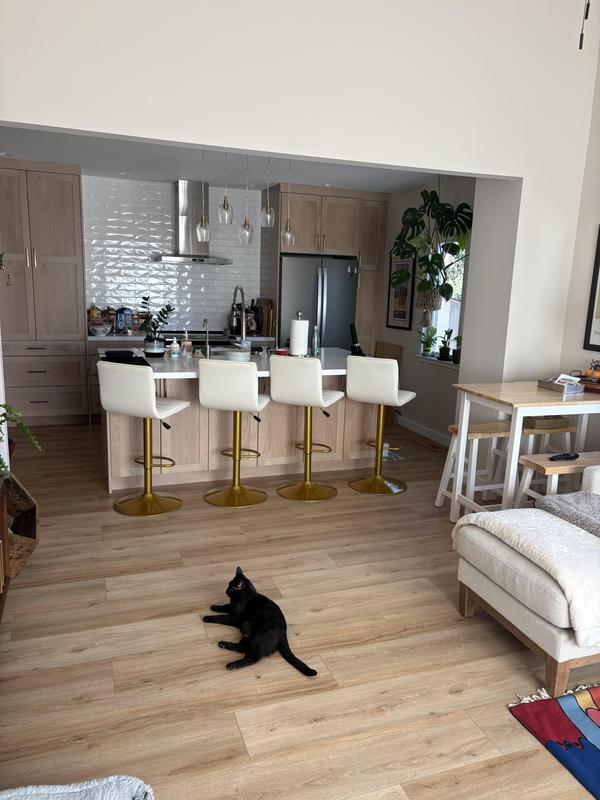I love my new bar stool! Looks perfect in my kitchen. Sleek design yet compliments my farmhouse decor. Quality built and so comfortable! Easy clean up too! I would recommend this product to anyone. Don’t hesitate buy it!