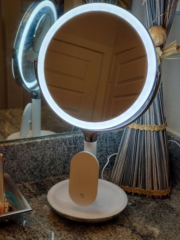 SpaStudio Vanity 8-inch Mirror with Built-In Qi Wireless Phone Charger, 5X and 10X Magnification