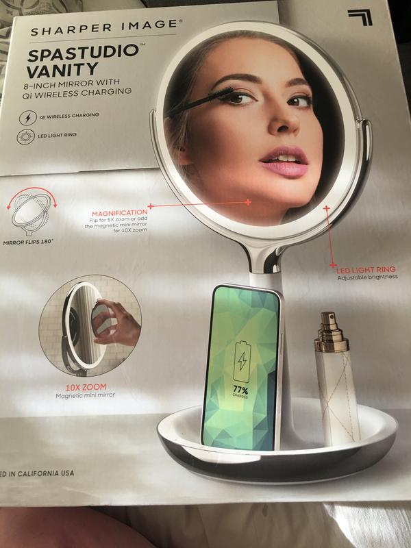I absolutely love the Sharper Image SpaStudio Mirror. The mirror is so nice and large at 8 inches and the phone charger is a real plus.